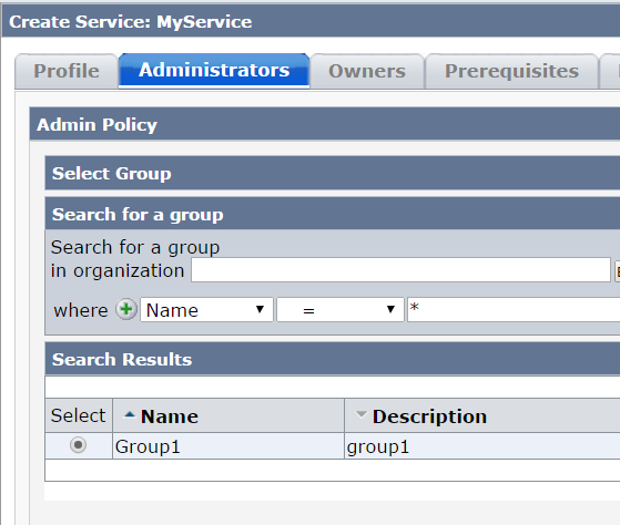 Click submit and repeat the steps to Create a Service. You should now see this when browsing for a group: