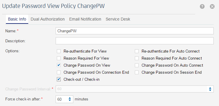 The policy is set by target account. You can define the Password View Policy(PVP) to change the target account after being used.