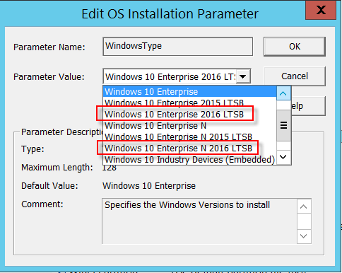 In OSIM we have a parameter WindowsType which is used to select the desired Windows 10 version for installation. In the current templates you cannot select "Windows 10 Enterprise 2016 LTSB" and thus the error is thrown when you deploy the image.