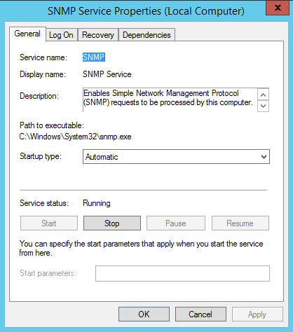 When you're troubleshooting System Status error messages which are generated by the Watchdog service, it's sometimes necessary to check the security settings for the Windows SNMP Service. But you may find that when you look at the Properties for the SNMP Service, the Security tab is missing: