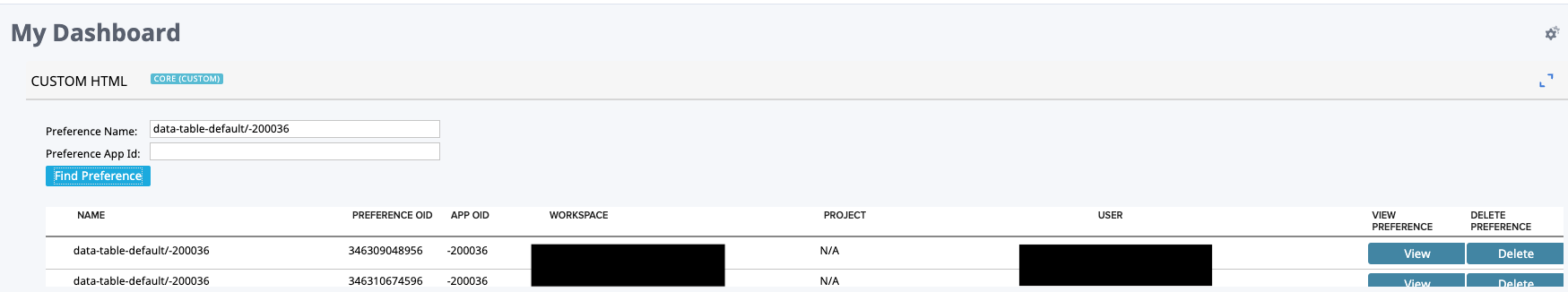 3. You will be prompted to enter the Preference Name, enter: data-table-default/-200036