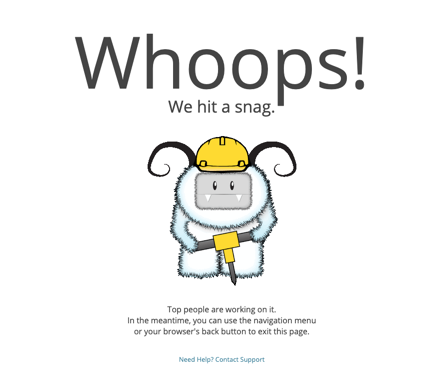Users may be getting an error that says: Whoops! We hit a snag. The "Yeti Betti" character will also be displayed.