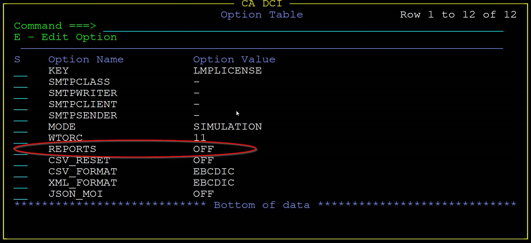 Please note that before running that job, the REPORTS parameter must be set to OFF in ISPF CA DCI Option Table: