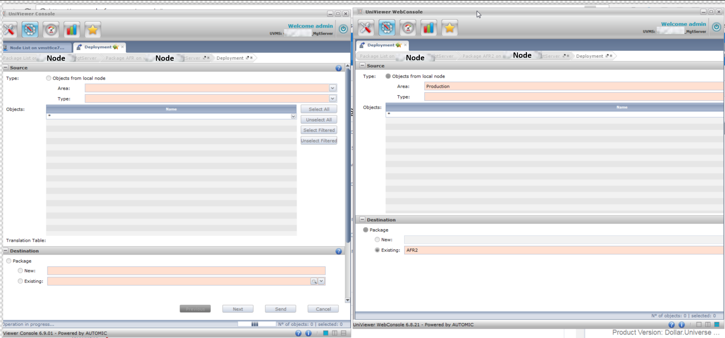 The Source and Destination Sections in UVC 6.9.01 are not automatically populated as it is expected when trying to create a package with objects from a v5 node.