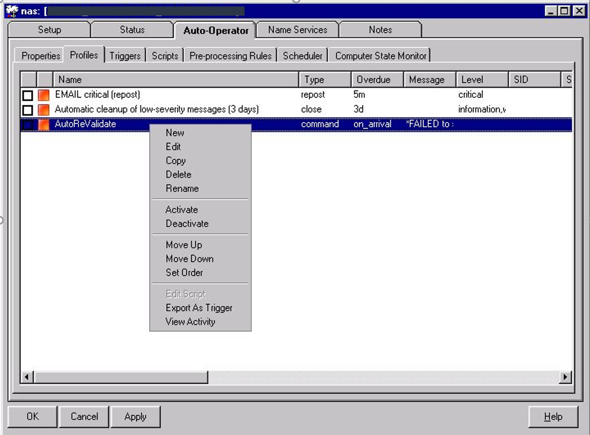 At NAS Auto-Operator -> Profile tab , right-click on profile created and click on Activate.