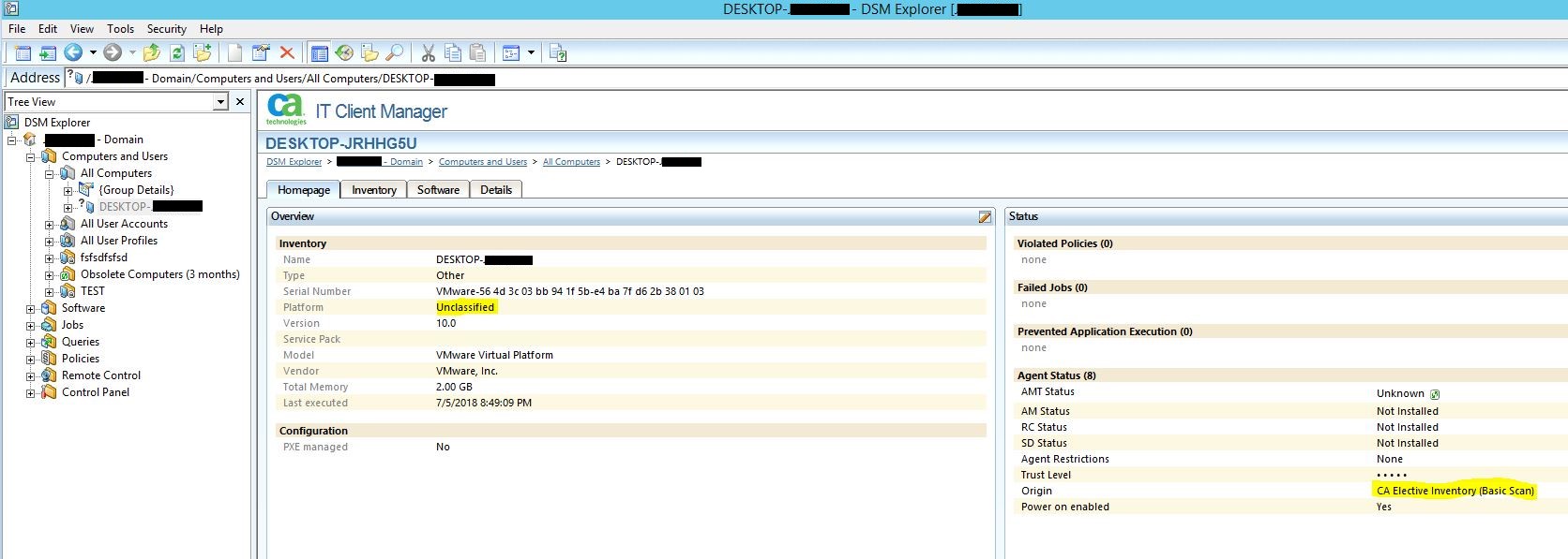 NRI (Non Resident Inventory) of Windows 10 machine appears as Unclassified Platform.