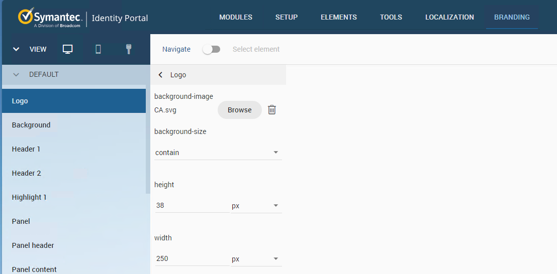 This document shows how to update the Portal logo, which by default shows 'Symantec | Identity Portal'