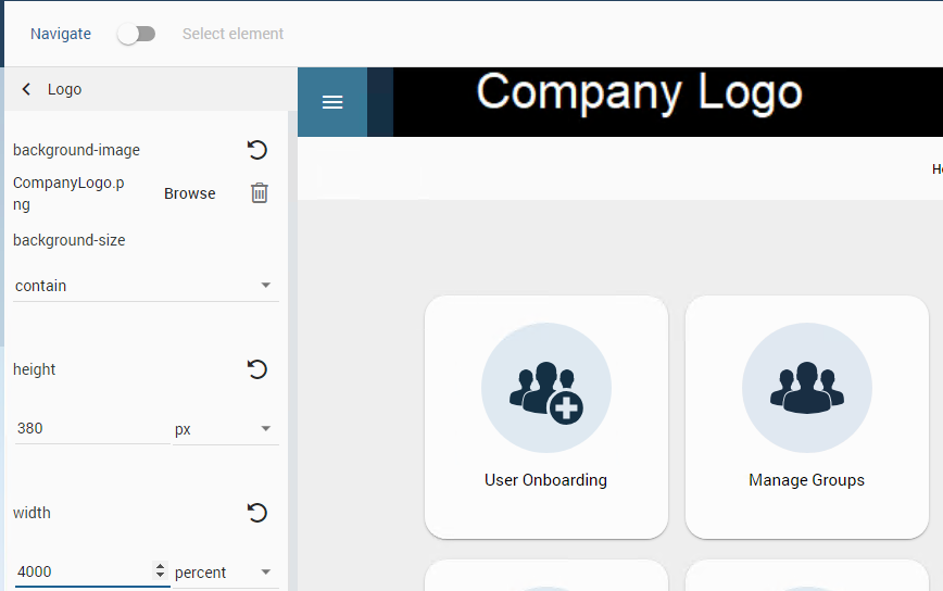 Adjust the Height and Width values as needed to correctly position the new Logo: