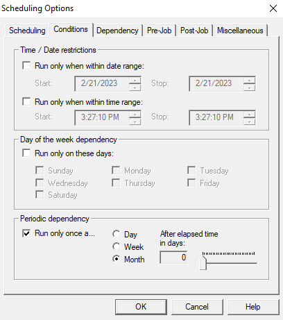 4- In Scheduling options put "Run only once a Month"