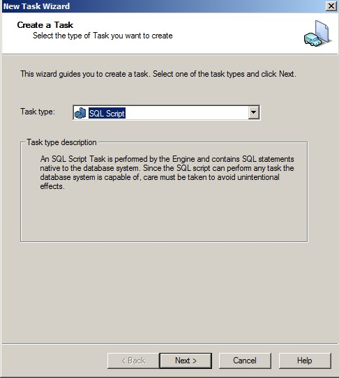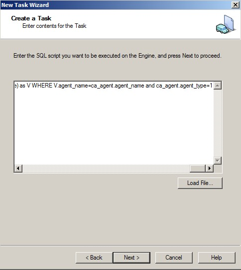 1- In DSM Explorer select one engine (eg: SystemEngine) and create a new Engine task with type SQL Query :