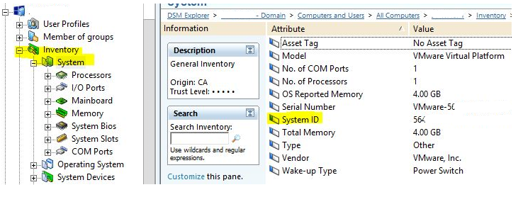 3- Then the column User data 2 could be added in DSM Explorer in order to display the System ID for all computers :