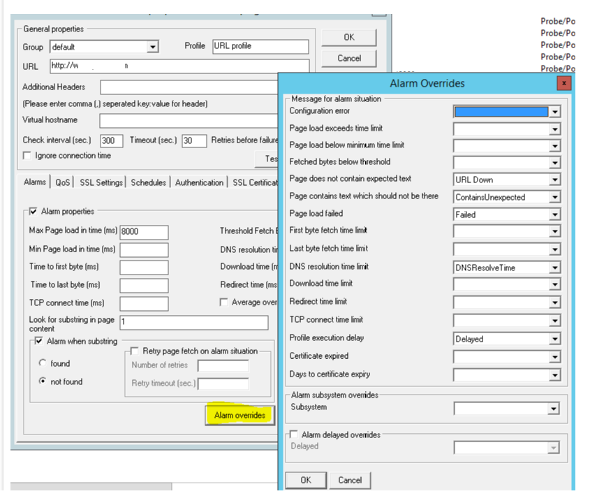 We would like to define and assign different alarm levels to different profiles in the url_response probe. Is this possible?