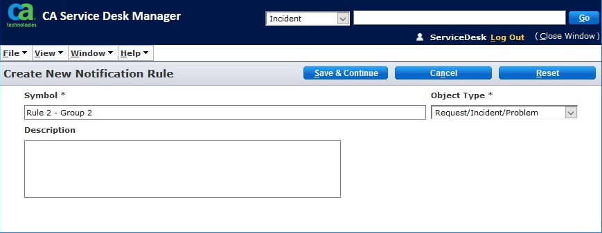 We will assemble each Notification Rule and create rules "Rule 1 - Group 1" and "Rule 2 - Group 2" as follows. The Notification Rule ties the Notification Message Template and Notification Rule Condition together, hence why we created the Notification Message Template and Notification Rule Condition first.