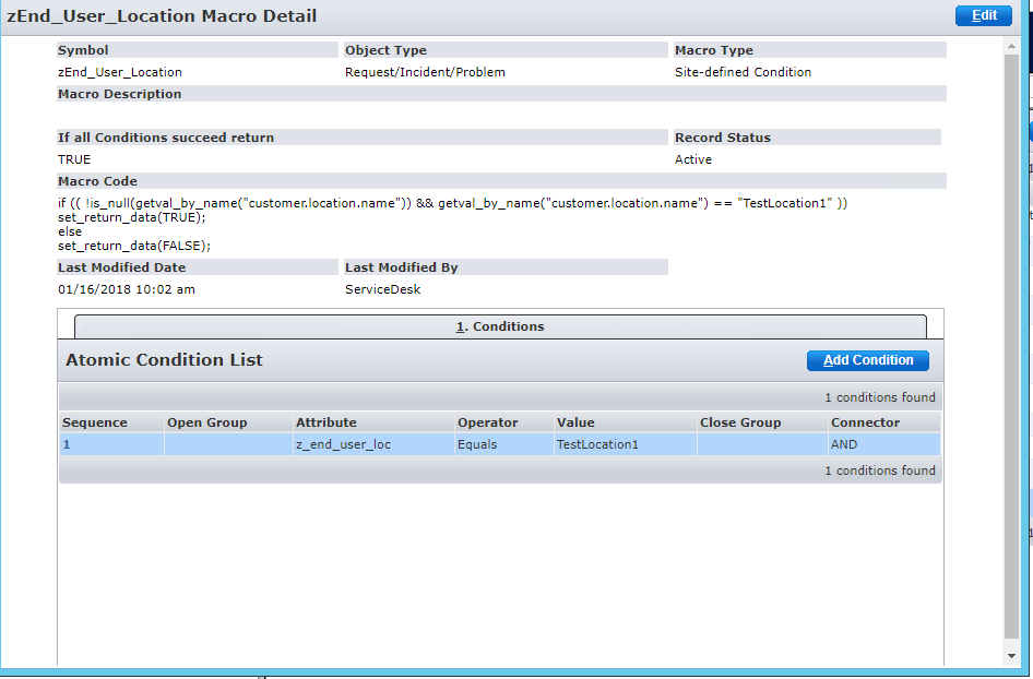 Next, create a ticket with the affected end user as “TestUser1” and without an assignee, then save it. The condition will be met as Test User 1’s location is TestLocation1, so that notification rule will fire, and should notify “ServiceDesk” (in the example) (or whichever contact you specified to get notified in the notification rule).
