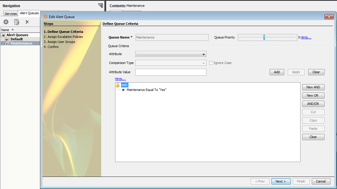 1) Create an alert queue with "Maintenance equal to Yes"