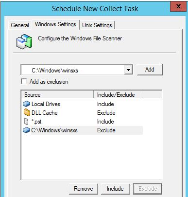 5- Add directory C:\Windows\winsxs with Exclude option.
