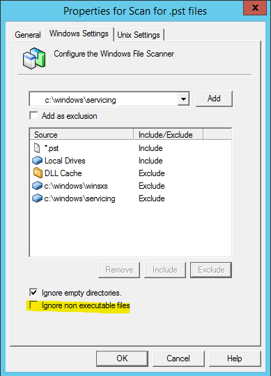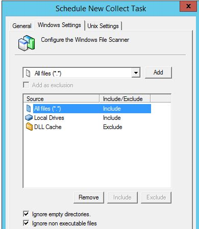 6- If files to collect are non executable files (*.exe, *.dll), uncheck the option "Ignore non executable files"