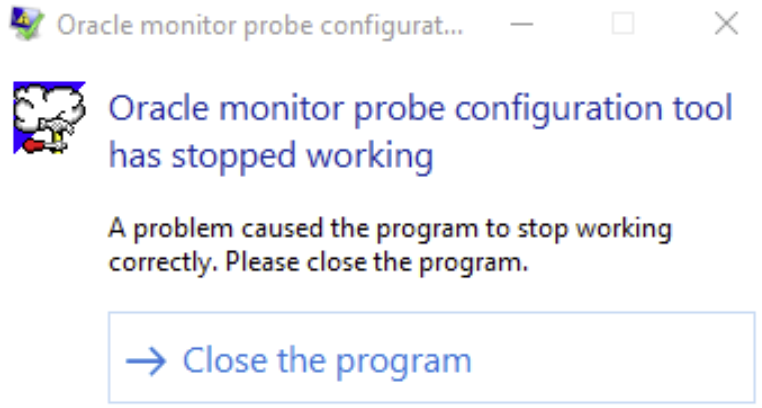 Oracle monitor probe configuration tool has stopped working. application crashes when we try to open configuration page.