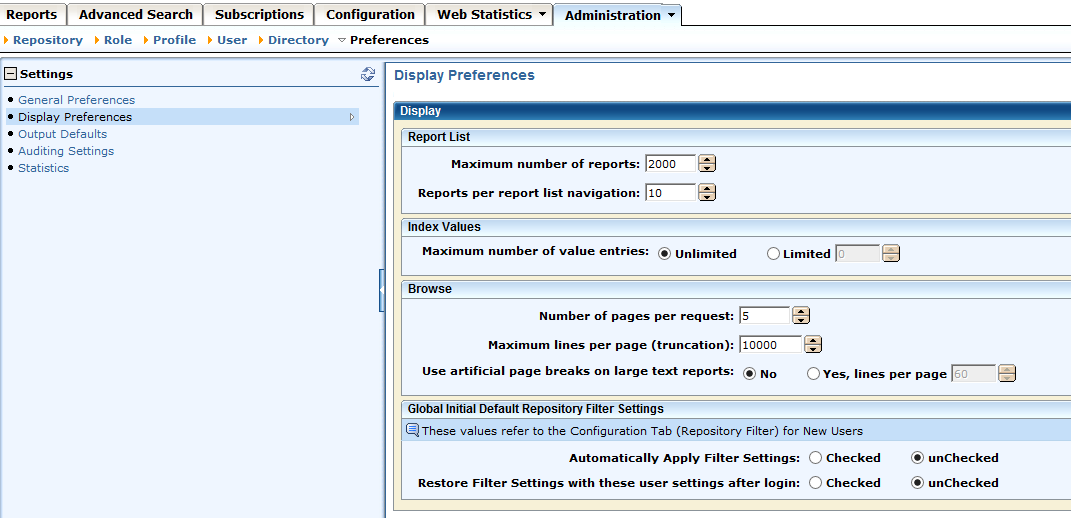 Filter settings being set as the administrator are not being used. When a new user comes in, Web Viewer tries to search 365 days instead of the value set by the administrator.