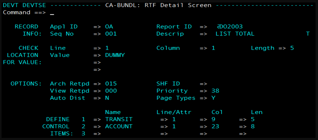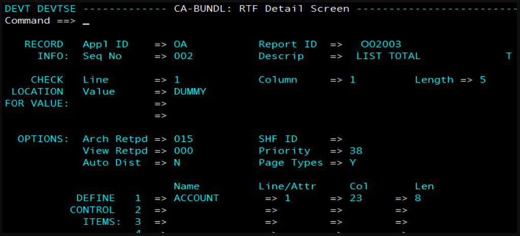 In the following example, the same name control item "ACCOUNT" had been defined in two different RTF records ( Seq No 1 and 2):