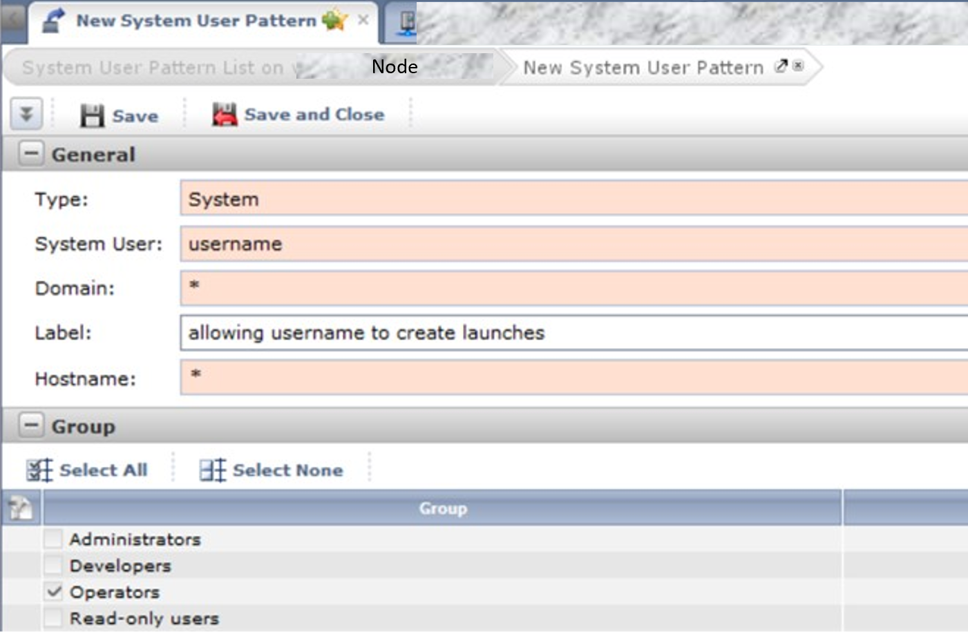 To fix it, create a "System User Pattern" for the user that will launch the command, here you have an example where we will map the user called "username" to the group "Operators":