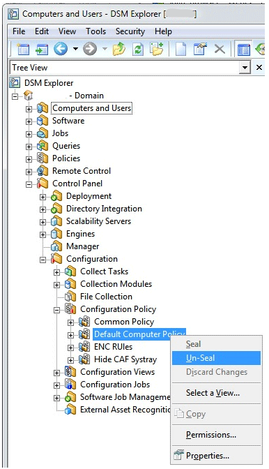 Open DSM Explorer and browse to: Control Panel->Configuration->Configuration Policy->Default Computer Policy