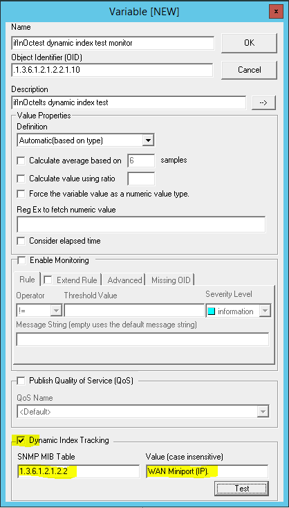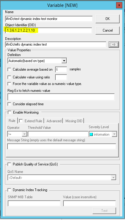 1. Create a new monitor for the device and in the Object Identier (OID) field on the Variable (NEW) dialogue, enter the table entry OID of the entry you wish to monitor: