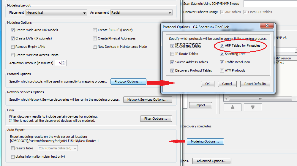 The most likely cause is the "ARP Tables for Pingables" is not selected in the modeling Protocol Options