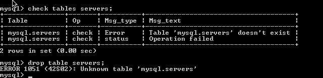 d. If the table is corrupt, enter "drop table servers;" to remove the table