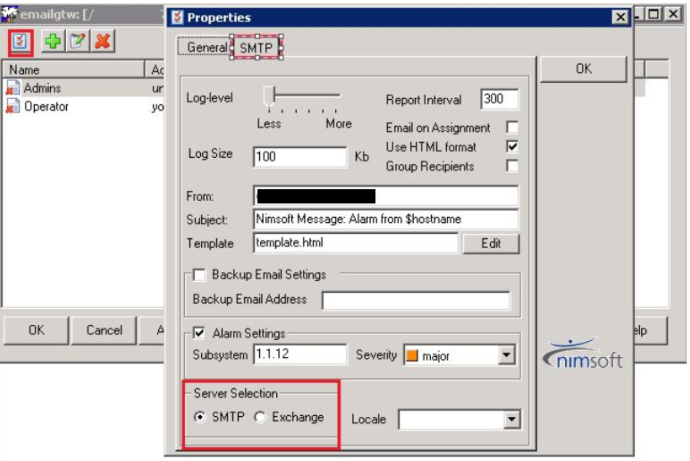 2. Configure your 'emailgtw' probe to connect with your Exchange or SMTP server for forwarding.