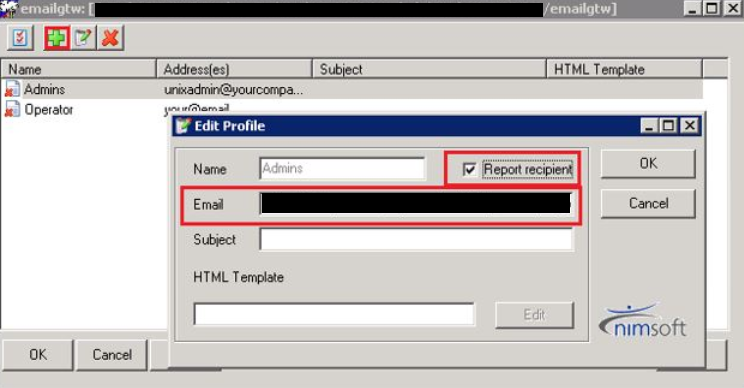 The Email Gateway (emailgtw) probe converts alarms from the NAS server into emails sent to groups or specified recipients. The emails are sent based on predefined criteria for alarms, such as, severity, origin, and time.