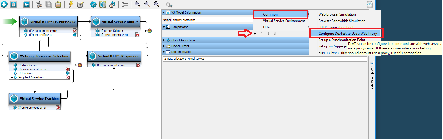 More information regarding the Configure DevTest to use a Web Proxy companion, refer to section "Configure DevTest to Use a Web Proxy Companion" in the documentation of the DevTest release you are running.