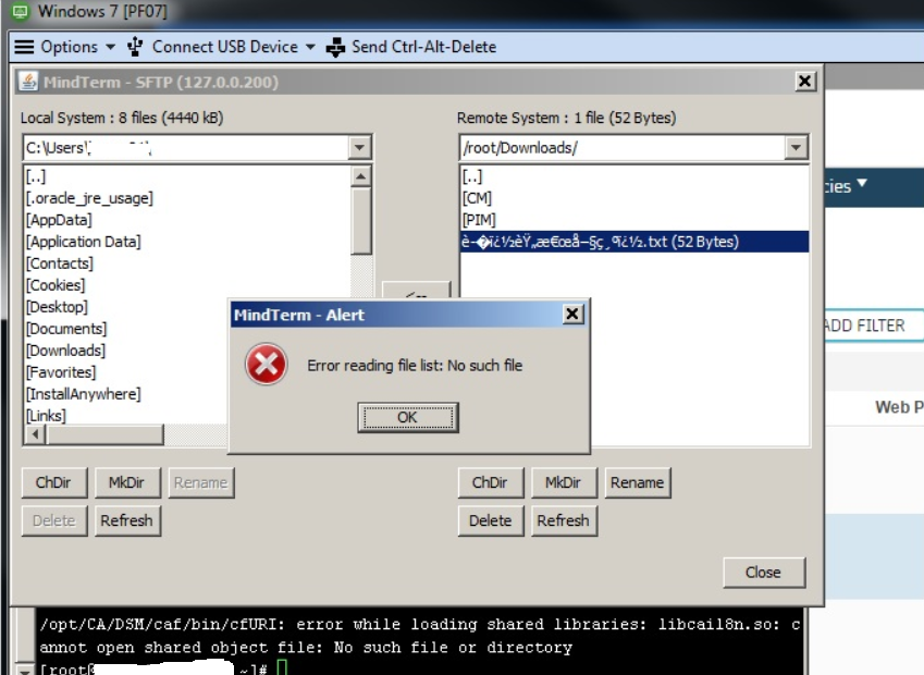 When use MindTerm builtin SFTP to transfer files,Error reading file list: error pop up when file name contain garbled characters. When press transfer no such file error will pop up.