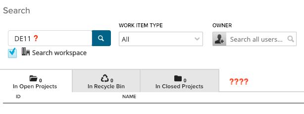 Why when searching for an artifact which is known to exist in a workspace the search engine does not return the artifact under the tabs 'In Open Projects', 'In Recycle Bin', or 'In Closed Projects'?