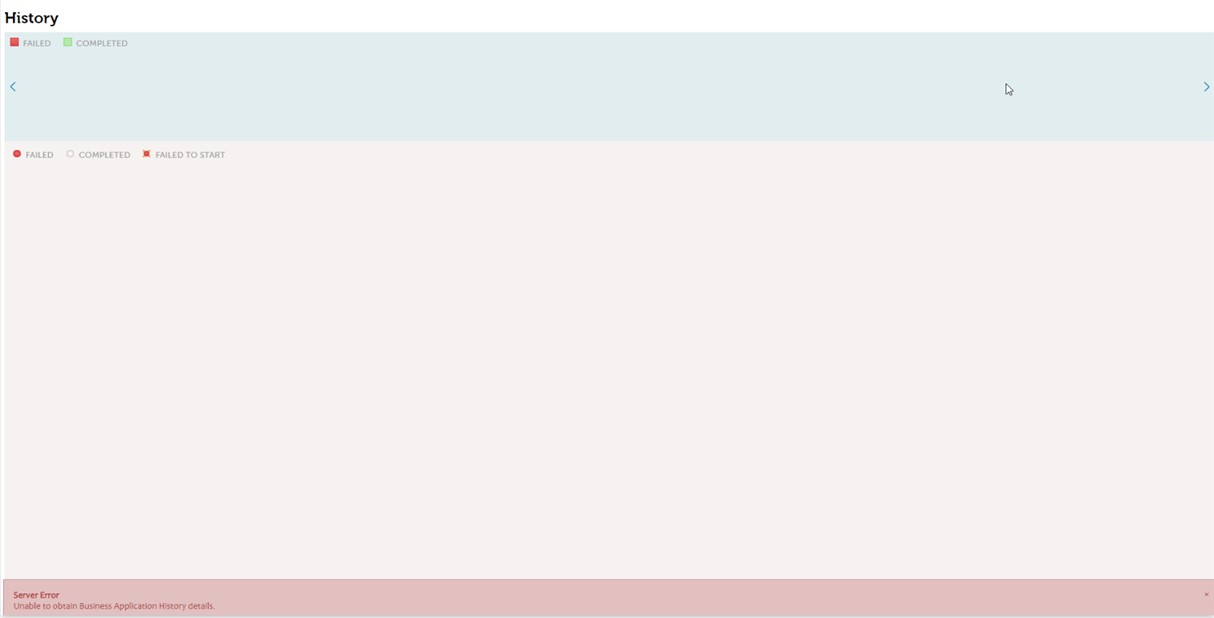Impossible to display the "View History" of Business Applications in Dollar Universe Explorer. When clicking on "View History" an error message appears: