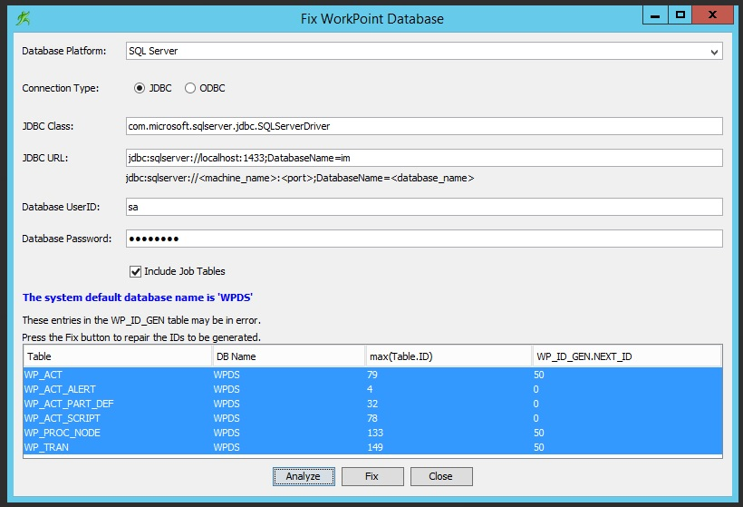 Note that the program hooks directly to the database via JDBC, it does not go through the WorkPoint Server. Make sure your SQL JDBC driver of choice is in the classpath as set up in the IdCheck.bat