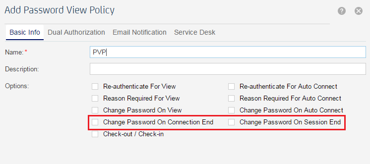There are two similar options available in password view policy, what is the difference? - Change Password On Connection End - Change Password On Session End
