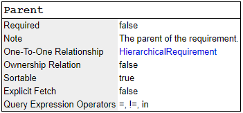 - Parent - can only be a user story. It will be 'null' for the top stories of hierarchies, as they have no parent.