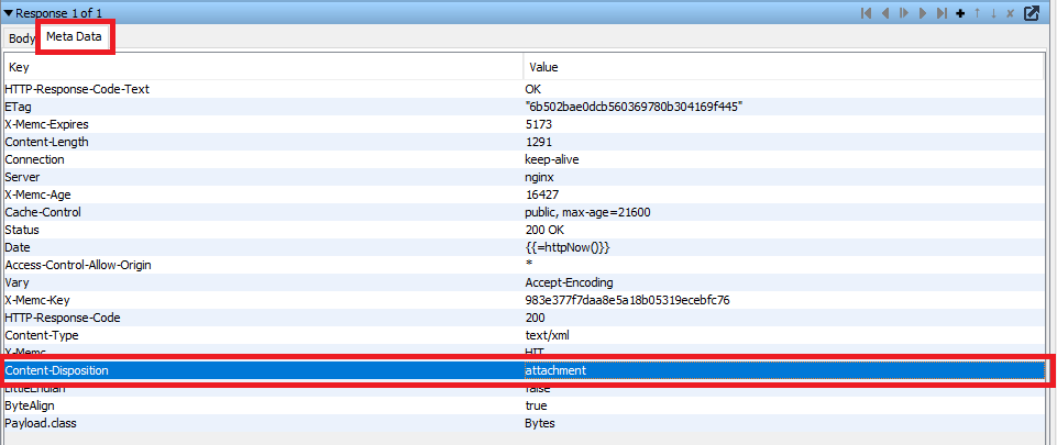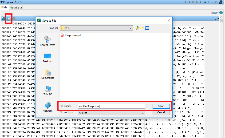 In the Response Meta Data, modify or add the the header Content-Type = application/pdf.