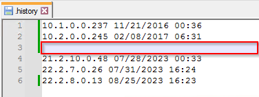 b) Blank/empty line/row in the $SPECROOT/Install-Tools/.history file: