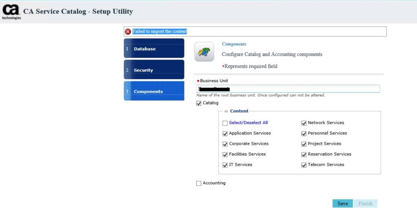 Reviewing "seeddata.log" file (located in C:\Program Files\CA\Service Catalog\logs\install), the following error appears while the import procedure is executed: