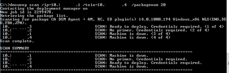 dmsweep scan /ip=<first ip> /toip=<last ip> /packagenum <package number from above>