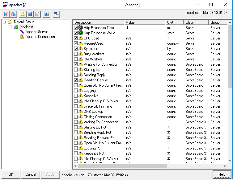 Apache probe is only showing Http Response values. All other items display as follows: