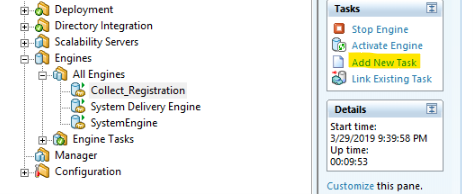 1- Create a new Engine. (Example : Collect_Registration). Right click on SystemEngine and select "Create New Instance..."