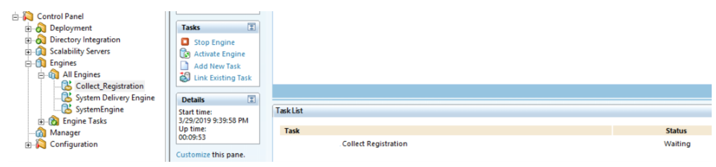 Then give a name (ex: Collect_Registration) and click OK. The new engine is created.