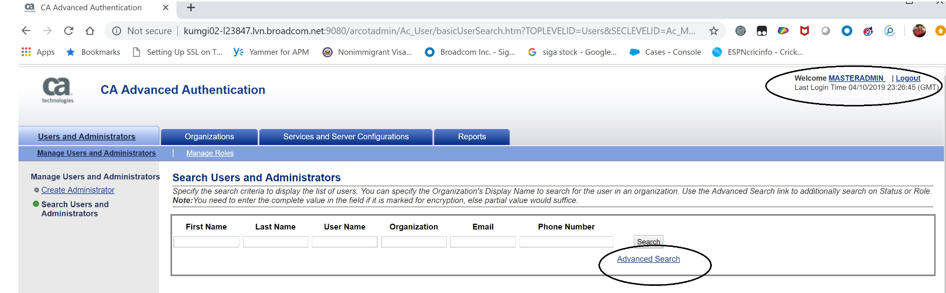 Discussed above is the recommended way of extracting the Admins for CA Strong/Risk Authentication servers and involves usage of the Master Admin console.