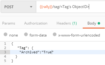 Here is a POST example of archiving a tag using WSAPI by setting the Archived field to 'True'.
