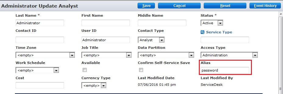 How to set up a Service Desk Manager login user's password when we are not allowed to add the user to OS or EEM for some reason?