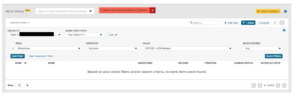 When loading any page in Rally a user is getting a red flare error "Cannot sort on attribute ..."