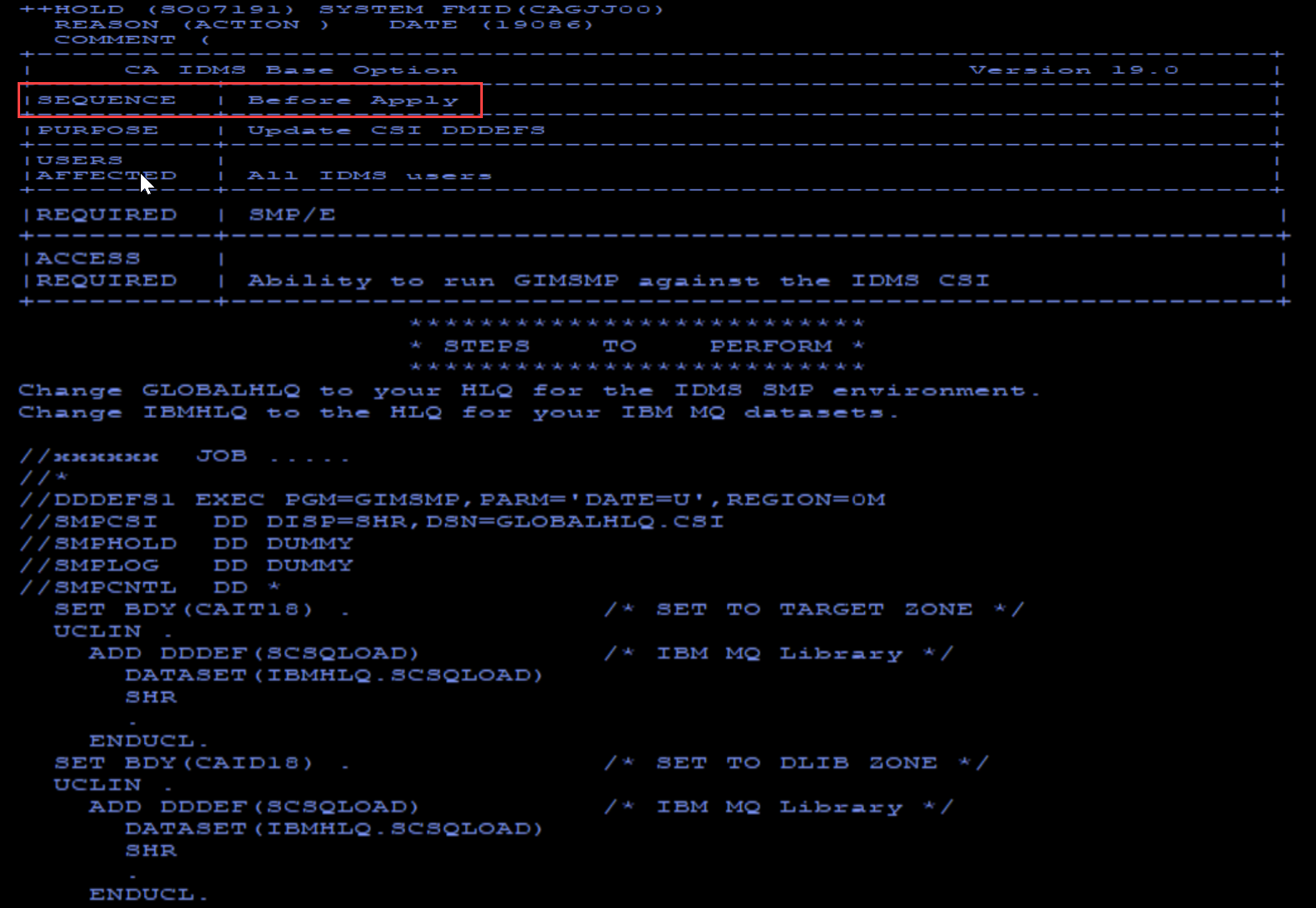 See the HOLDDATA Instructions for PTF SO07191